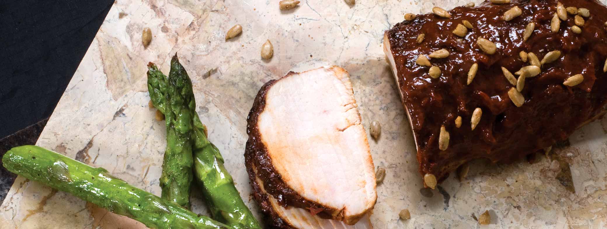 Cortar en rebanadas delgadas, espolvorear con semilla de girasol y acompañar con papitas rostizadas y espárragos.