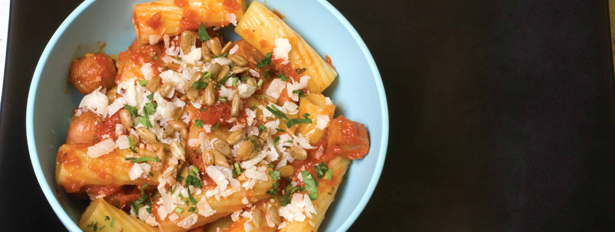 Agregar el penne y parmesano y cocer hasta mezclar bien.